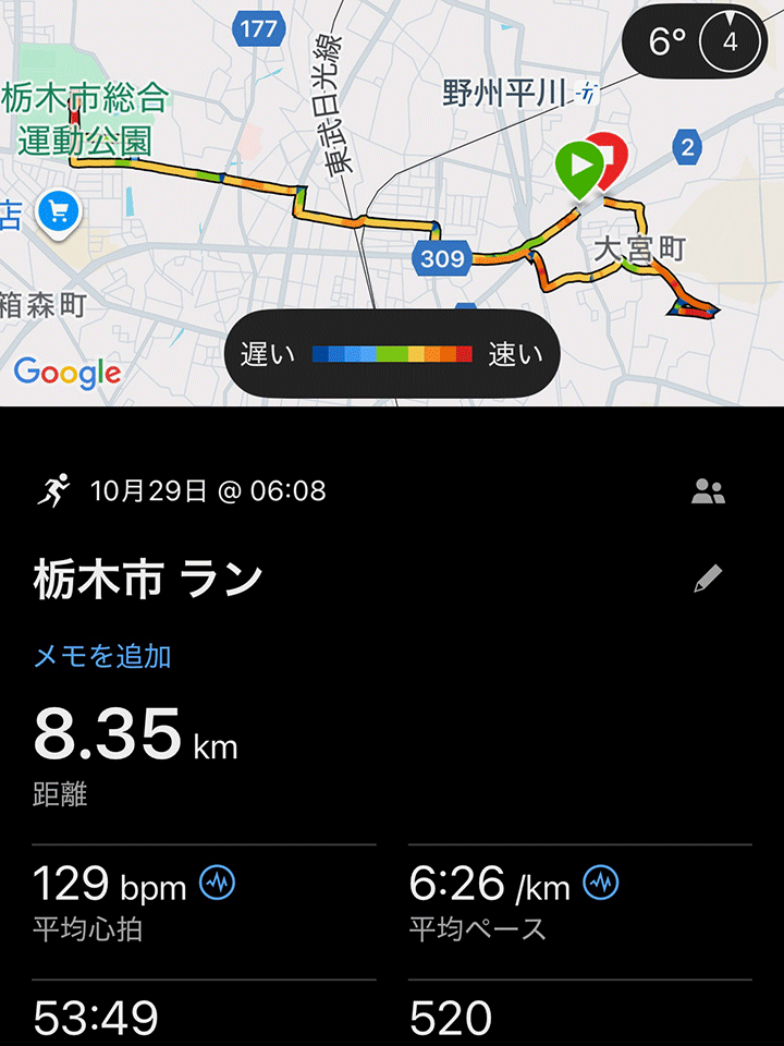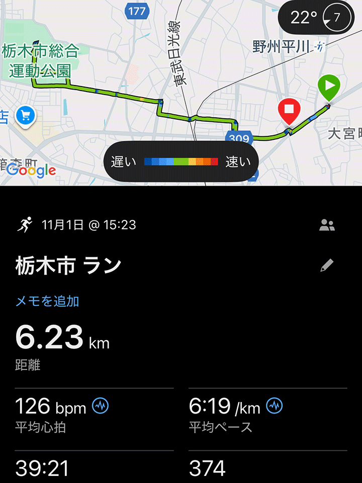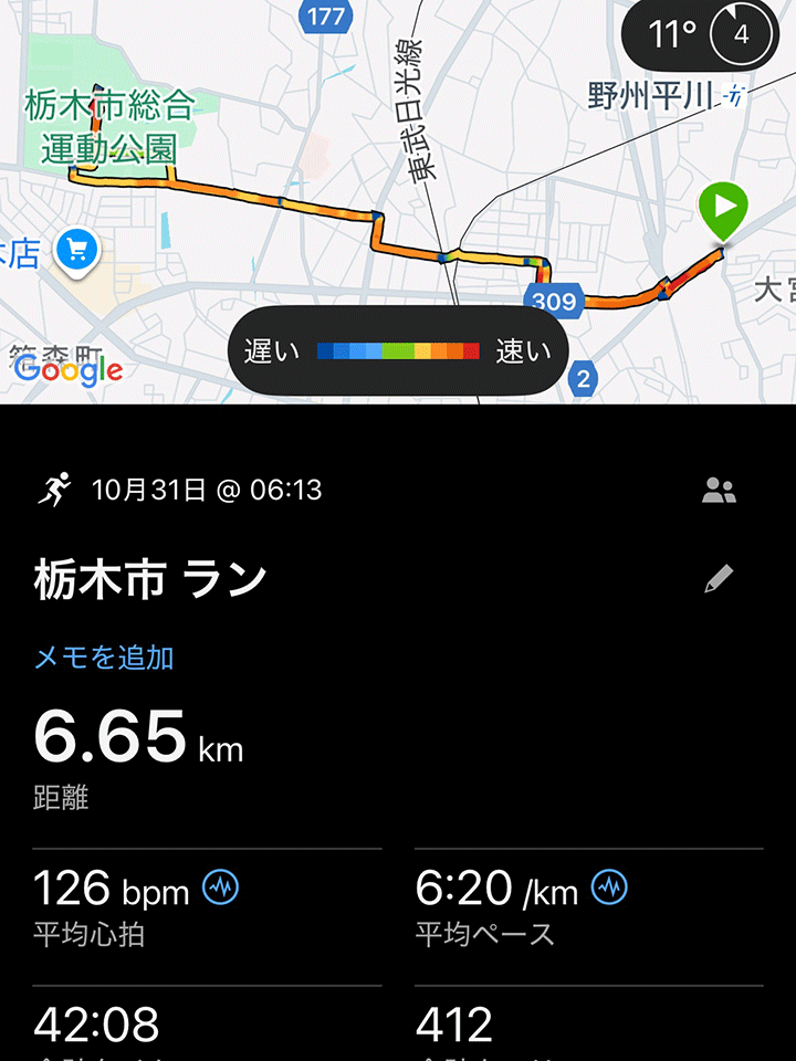 先週は急に寒くなったので、朝ランは辛くて諦めたことが多かったです。ダメだよね。来週は気合い入れて頑張る。でも、週3は及第点かな?