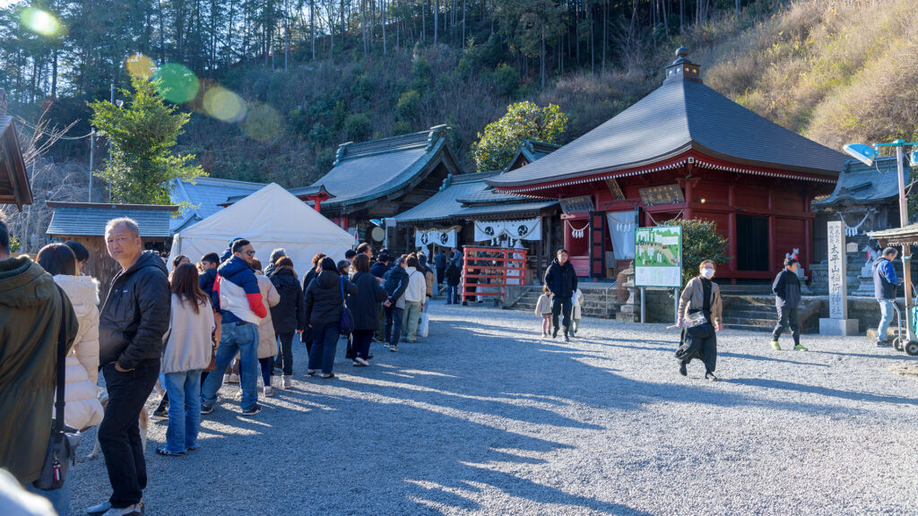 手水舎を過ぎ列に並んだが、結構な列だ。途中、懐かしい知り合いにも会った。これが地元参拝ならではなのである。毎年意外な方々と出会う。