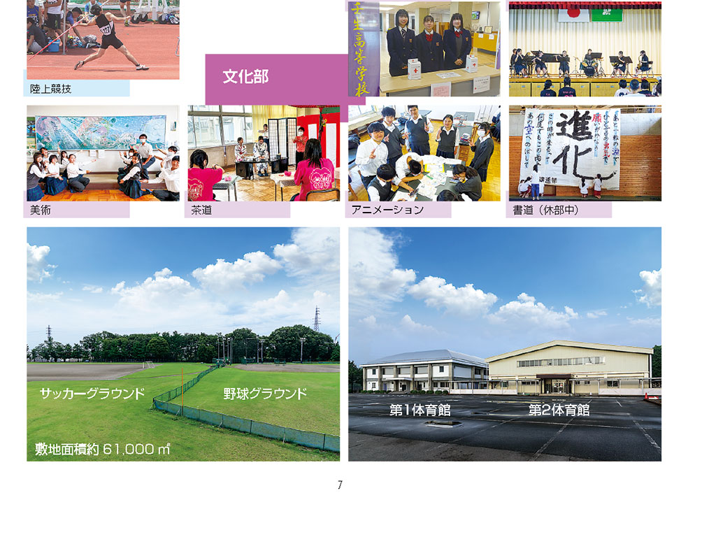 6〜7ページは「優しさあふれる学校行事、恵まれた環境を活かした部活動」をキャッチコピーに、6ページで「学校行事」を、7ページでは「部活動」をそれぞれ写真付きで紹介しています。